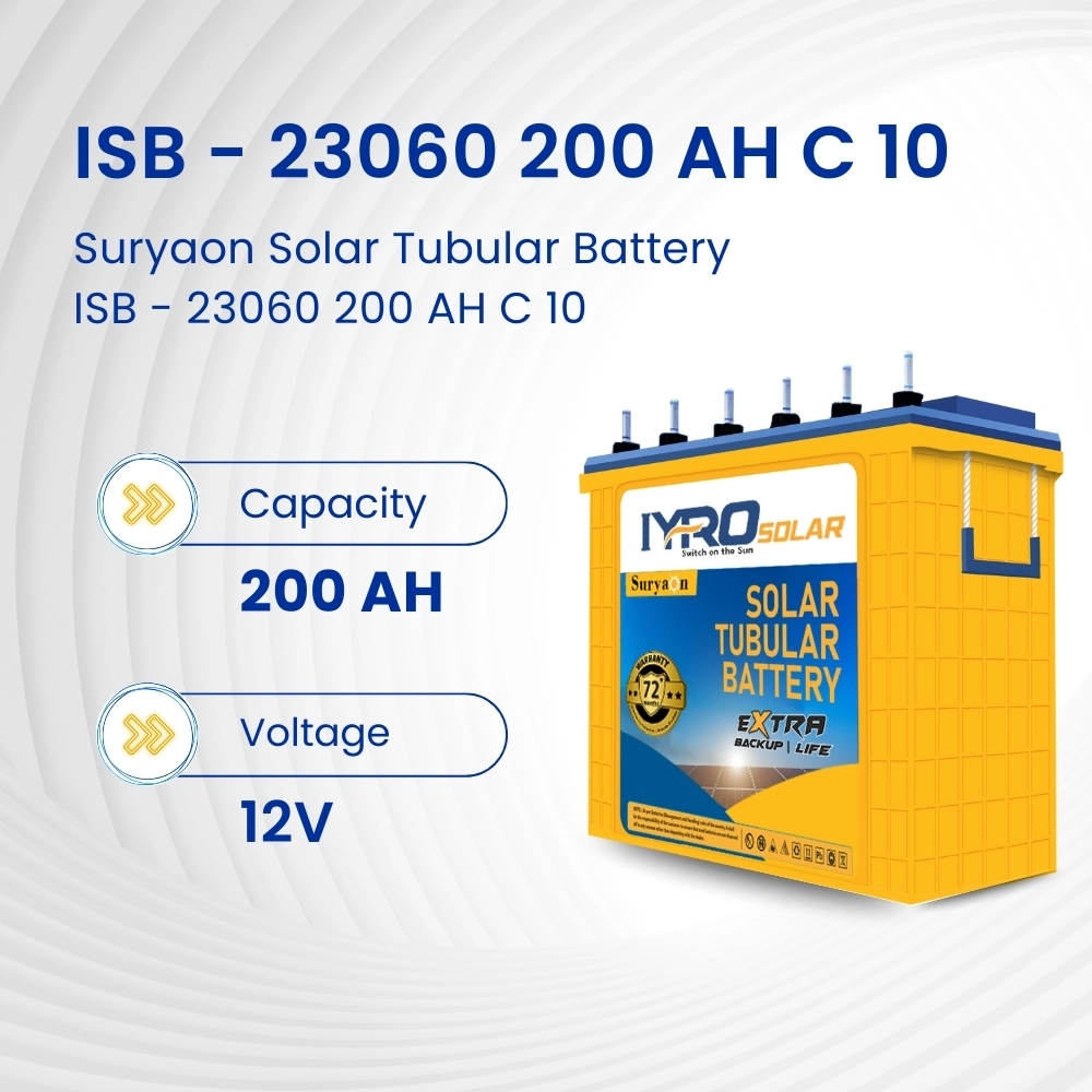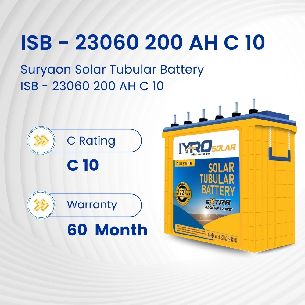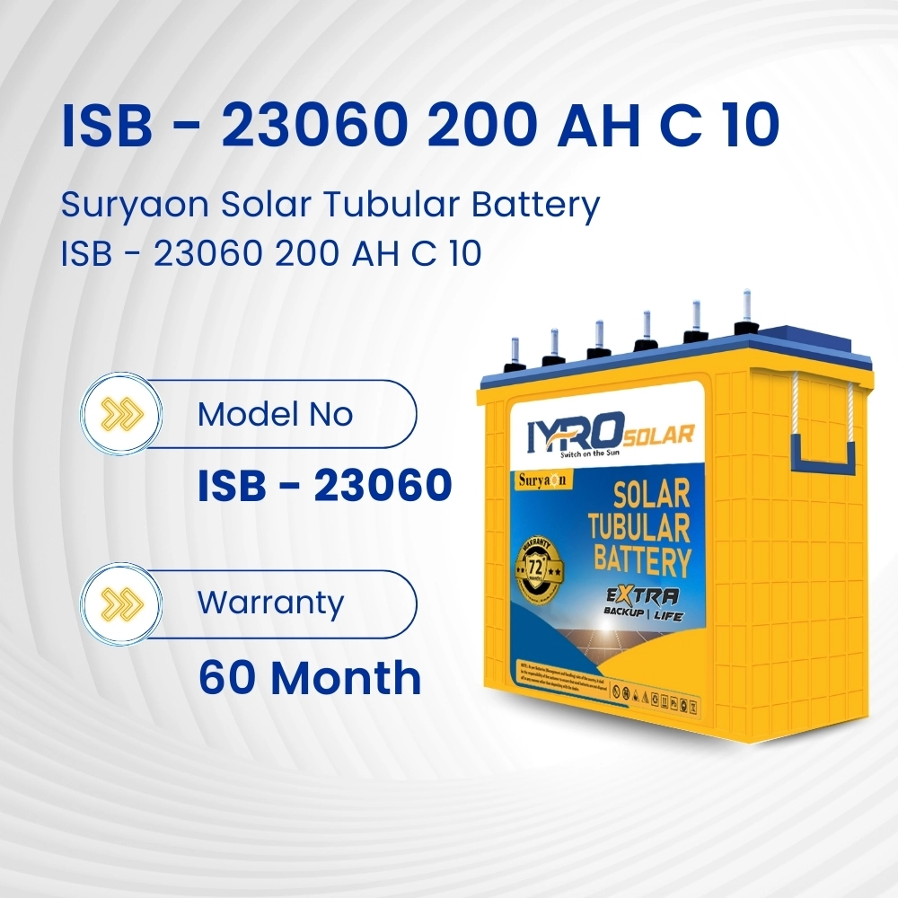SURYAON Iyro ISB-23060 – 200Ah Solar Tubular Battery (C10 Variant) (60 + 60*) Warranty